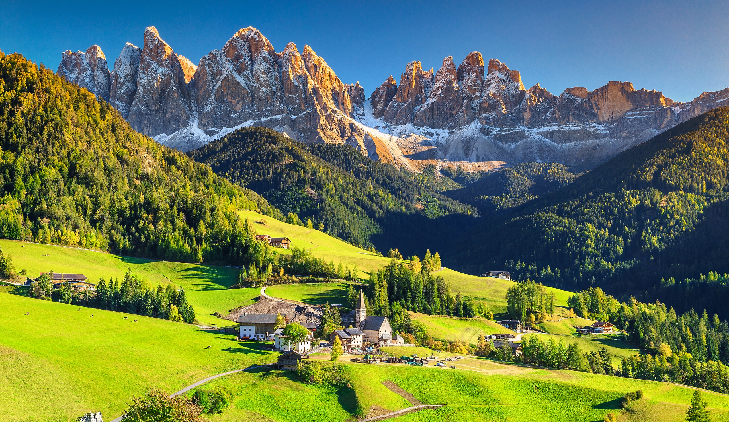 Die Dolomiten sind ein Berggebiet im Norden Italiens. Die Berge haben ein ikonisches Bild dank der steilen Klippen und Gipfel, die Berge wurden über Jahrtausende geformt. Der höchste Gipfel der Dolomiten ist die Marmolada mit einem Gipfel von 3343 Metern. Auf den kleineren Bergen und Hügeln zwischen den Dolomiten finden Sie charmante Dörfer und hier und da größere Städte. Die Gegend ist das ganze Jahr über für alle Arten von Freizeitaktivitäten beliebt. Laufen, Ski fahren oder auf einem Liegestuhl mit Blick auf die Berge sitzen. Es ist alles möglich!